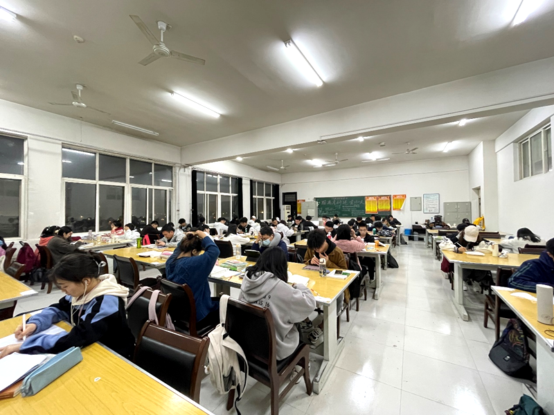 多措并举,做到考研指导不停歇,关心服务不断线,为备考提供强有力的保障。为使考研学子有一个良好舒适的学习环境,开学初期就积极准备为2023届考研学生提供考研自习室,相继开放了三个自习室140余个固定自习座位和40余个随机自习座位。通过抽号的方式对考研学生进行座位分配,严格实行签到制度,违反者将归还自习室名额供其他学生使用。