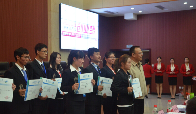 经过前期初评和集中复评, 10名团队从123名报名队伍中脱颖而出。决赛中,每个团队有3分钟的视频展示、5分钟的陈述以及5分钟的现场提问与答辩环节。参赛团队准备充分,思路清晰,创意新颖,评委们从项目启动资金、项目运营资质、市场可行性等多方面提问,参赛团队认真备答、虚心听取评委们提出的建议与意见。经过激烈的演讲与答辩,竞赛评委会最终评定《DIY创意手绘工作室》获得本届比赛金奖,《户外净水加热器》、《校园帮帮忙》、《安塞腰鼓演艺公司》三个项目获得银奖,《老人之家有限责任公司》等六个项目获得铜奖。