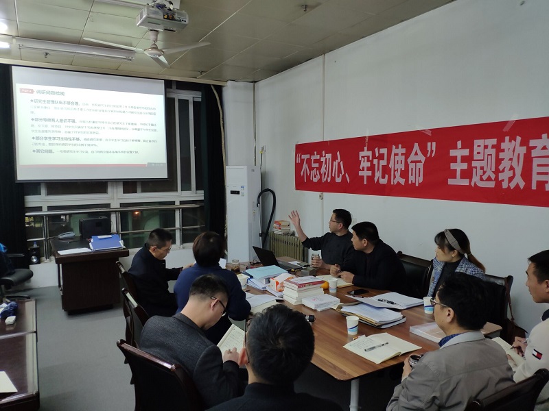 在雁塔校区2号教学楼406室召开主题教育工作进展汇报会暨处级干部调研成果交流会。校督导组成员耿岭、乔晓,学院理论学习中心组全体成员和各教工党支部书记参加。