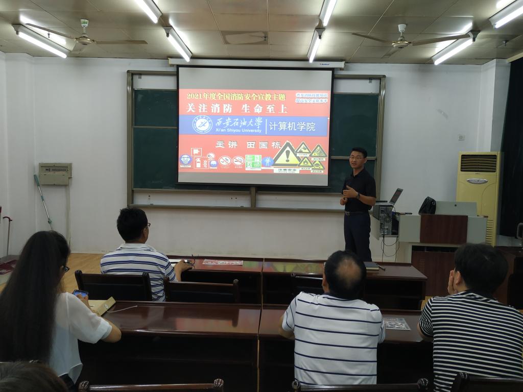 大会第二阶段,学院邀请西安市圣安防火技术中心特聘讲师田国栋,为学院全体教职工进行了消防安全主题讲座。田老师从真实火灾案例出发,为大家生动的普及了消防器材使用、险情中自救与施救、实验室(家庭)突发险情应对等消防安全常识,增强了全院教职工防火防灾意识。