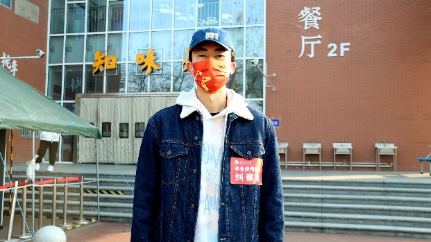 “我希望能付出一份微薄的力量。”两年前新冠疫情初次暴发之际,正是张峻宇同学刚入学的时候,彼时作为团支书的他听到消息后很希望通过自己的力量进行志愿服务,在上网课期间也利用下课时间服务社区,帮助腿脚不方便的居民采购物资。“我很开心可以成为学校的志愿者。在学校的防疫工作中,我感受到了自己作为当代青年的责任和价值。”