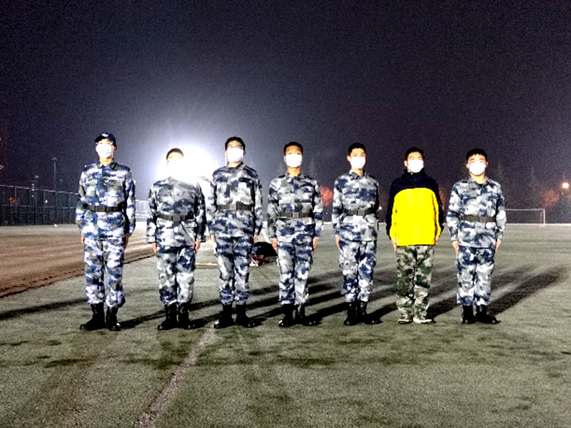 在这之后开始了全员核酸的检测,每一次的全员核酸检测都有着他们的辛勤付出,在天刚蒙蒙亮的清晨,他们就动身前往操场,为马上要进行的核酸检测开始准备工作:搭棚子、摆设备、调试工具……在零度以下的操场上,张峻宇和其他战友不畏严寒,身着迷彩与医护人员一起,化身守护学校的战士,保证每一次任务的顺利进行。