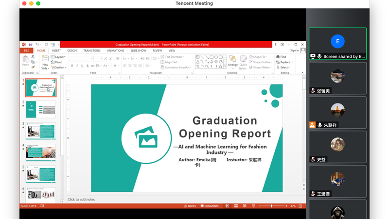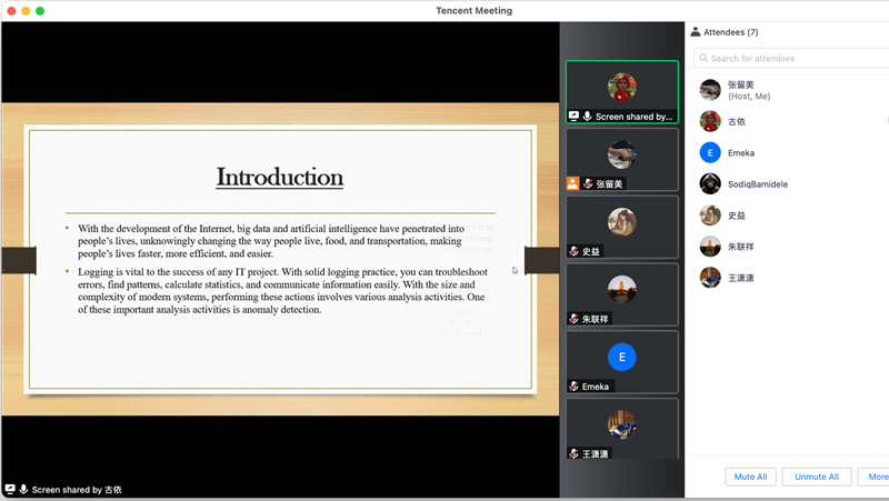 答辩会上,艾闻东、索迪克、梅卡、古依等4名留学生从论文整体框架以及选题意义、文献综述、理论框架、研究方法、创新与特色等方面做了详细阐述。4名留学生生的论文选题包括深色皮肤的面部识别:以非洲人为例、人工智能中的性别偏见和歧视研究、人工智能和机器学习在时装业中的应用、自动安全日志分析中的异常检测等。