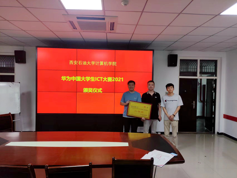 2019级程晓鹏、2019级任兴兴、2020级肖力斩获“华为ICT大赛实践赛-本科组网络赛道”二等奖。