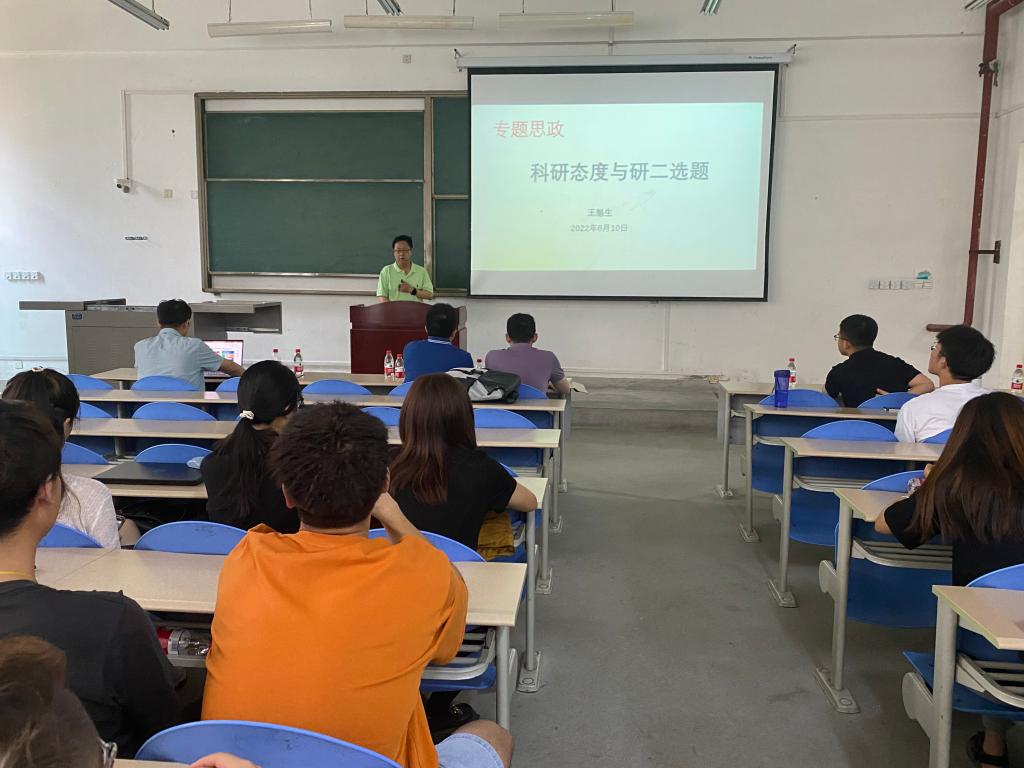 最后,王魁生院长谈到在研究生阶段要以积极健康的身心状态,参与学习和科研工作,保持与导师和同学的良好关系,正视困难与挫折,把个人的“小我”融入祖国的“大我”,用所学知识回馈党和国家的培养,服务国家和人民。永葆学习热情,在实践中锤炼本领、提升素养,努力做学习生活工作中的先进分子,成长为合格的社会主义建设者和接班人。