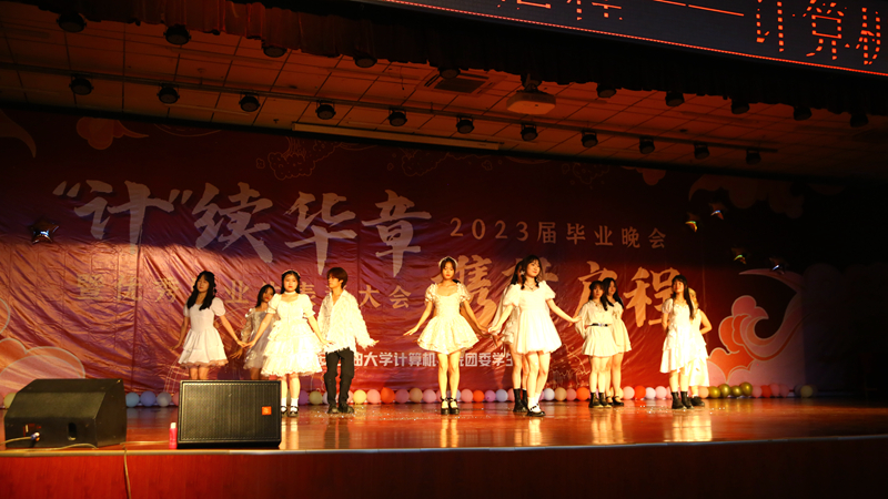 在鄠邑校区腾辉大学生活动中心举办“‘计’续华章·携梦启程”2023届毕业晚会暨优秀毕业生表彰大会,校党委学生工作部部长王亮、学院党委书记庞秉谦、院长王魁生、党委副书记庞远及各年级辅导员及四百余名学生参加了晚会。