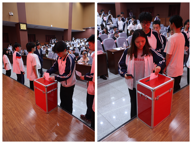 经与会代表无记名投票,选举产生了学院第二十二届学生会委员。新一届学生会当选委员在院团委书记乔晓老师的带领下,面向团旗庄严宣誓。