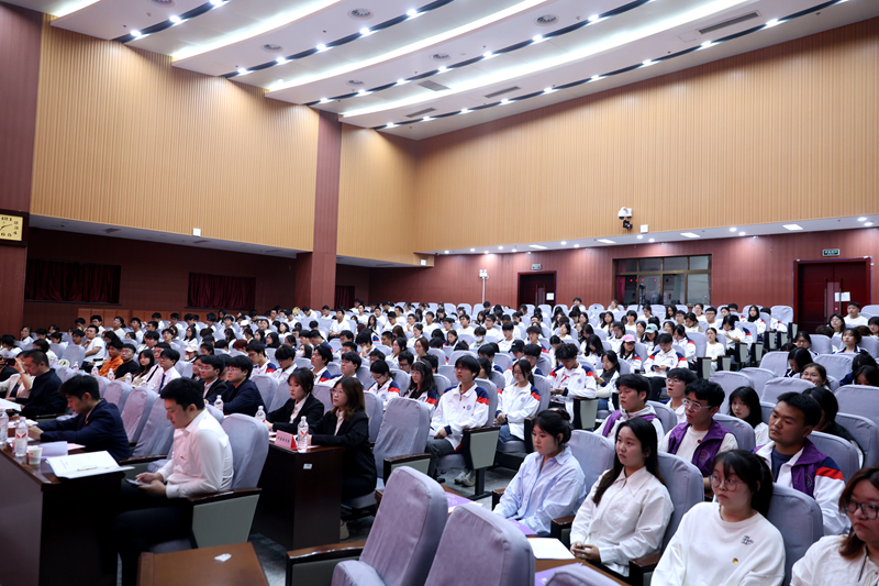 第十二届委员会届内调整暨第二十二次学生代表大会在鄠邑校区弘石报告厅顺利召开。校团委副书记孙浩哲、校学生会和兄弟院系团委学生会代表受邀参会,学院党委副书记庞远、学院各年级团总支书记及257名学生代表参加大会。大会由本科生2024级团总支书记、学生会指导老师刘亭普主持。