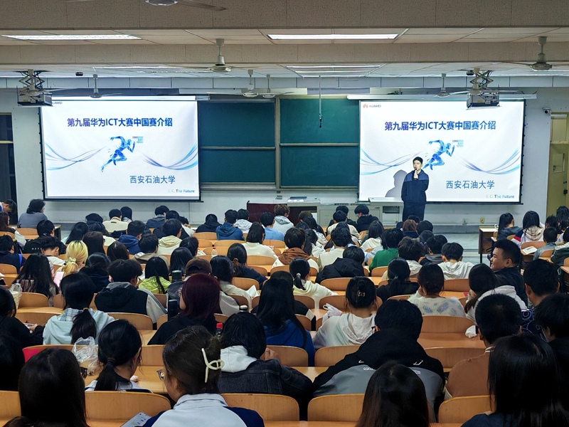 在鄠邑校区A139室举办第九届华为ICT大赛中国赛宣讲会。泰克教育西北区域总监李斌、陕西区域经理王瑶瑶出席大会并做宣讲,学院本科生、硕士研究生三百余人参加了宣讲会。宣讲会由学院2022级辅导员老师姚谦主持。