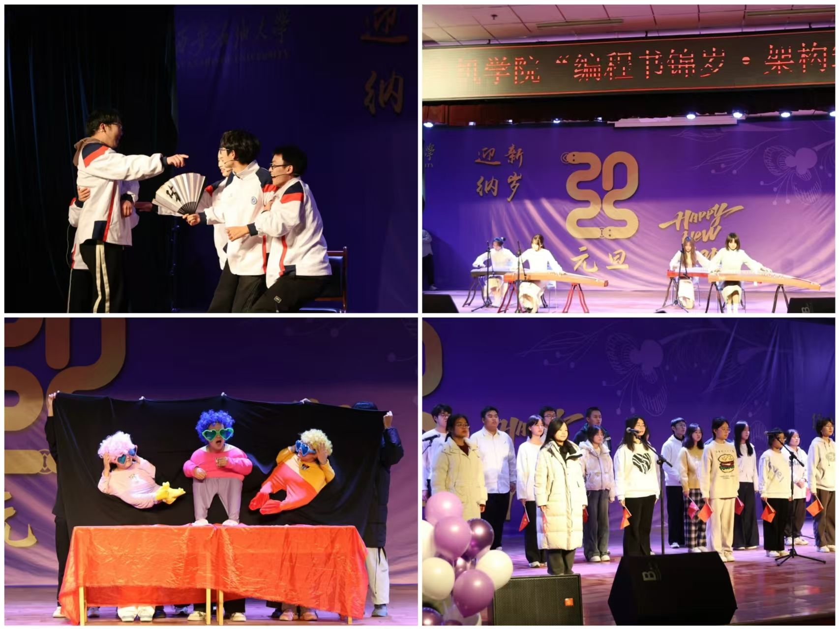 12月26日晚,学院在鄠邑校区腾辉大学生活动中心举办“编程书锦岁·架构筑新元”迎新晚会。学院党委书记庞秉谦,院长刘志坤,教授委员会委员王魁生、胡宏涛,副教授董海峰,党委副书记庞远,副院长张留美、杨文阳,工会主席卢胜男,校党委学生工作部(处)学生思想教育办公室主任张阳,学院各系(部、中心)负责人,学院学生工作办公室全体辅导员老师以及校院两级团委学生会学生干部莅临晚会现场,400余名同学现场观看了晚会。