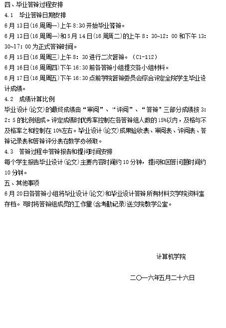 5278论坛 2016届本科毕业设计(论文)答辩工作安排