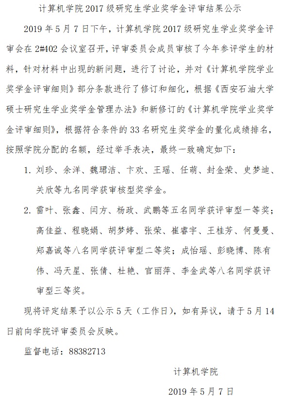 5278论坛 2017级研究生学业奖学金评审结果公示