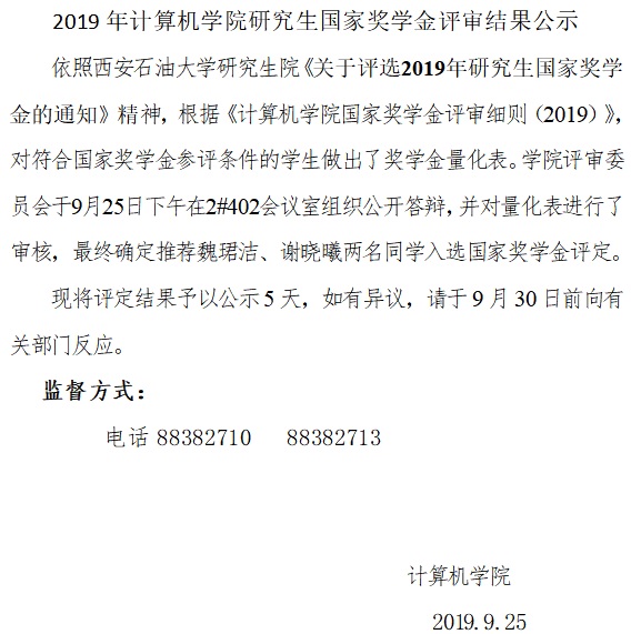 2019年5278论坛 研究生国家奖学金评审结果公示
