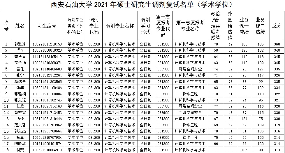 2021年硕士研究生复试名单(学术学位)公示